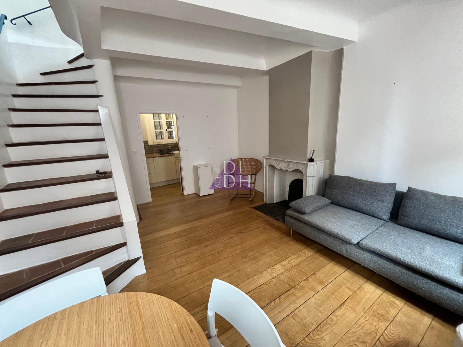 Rare à la location maison de village meublée comprenant en rez-de-chaussée une chambre/bureau, une buanderie avec WC, au 1er étage une lumineuse pièce de vie, une cuisine équipée et en dernière étage une chambre, une salle d'eau avec WC et une pièce dressing/bureau.