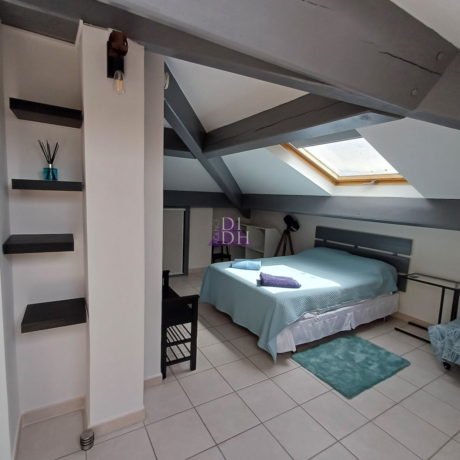 2 ème niveau : Grande chambre mansardée avec nombreux placards, douche et wc séparé.
