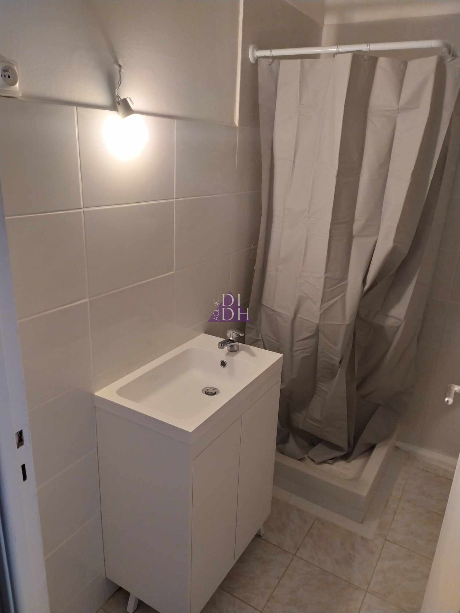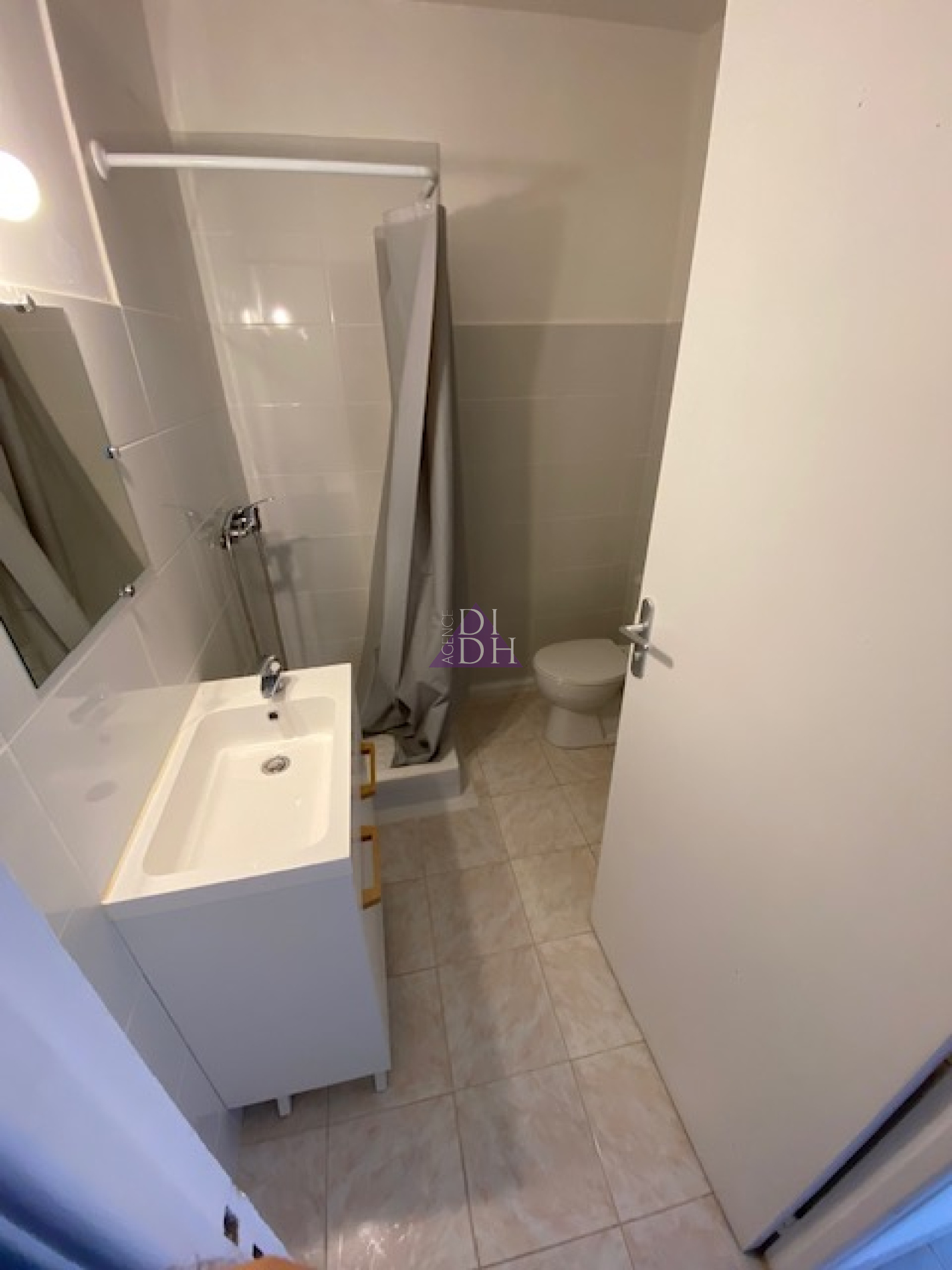 Entrée,Séjour, Salle de douche , wc, cuisine ouverte ( four, plaque vitrocéramique) ,terrasse, Parking privé.