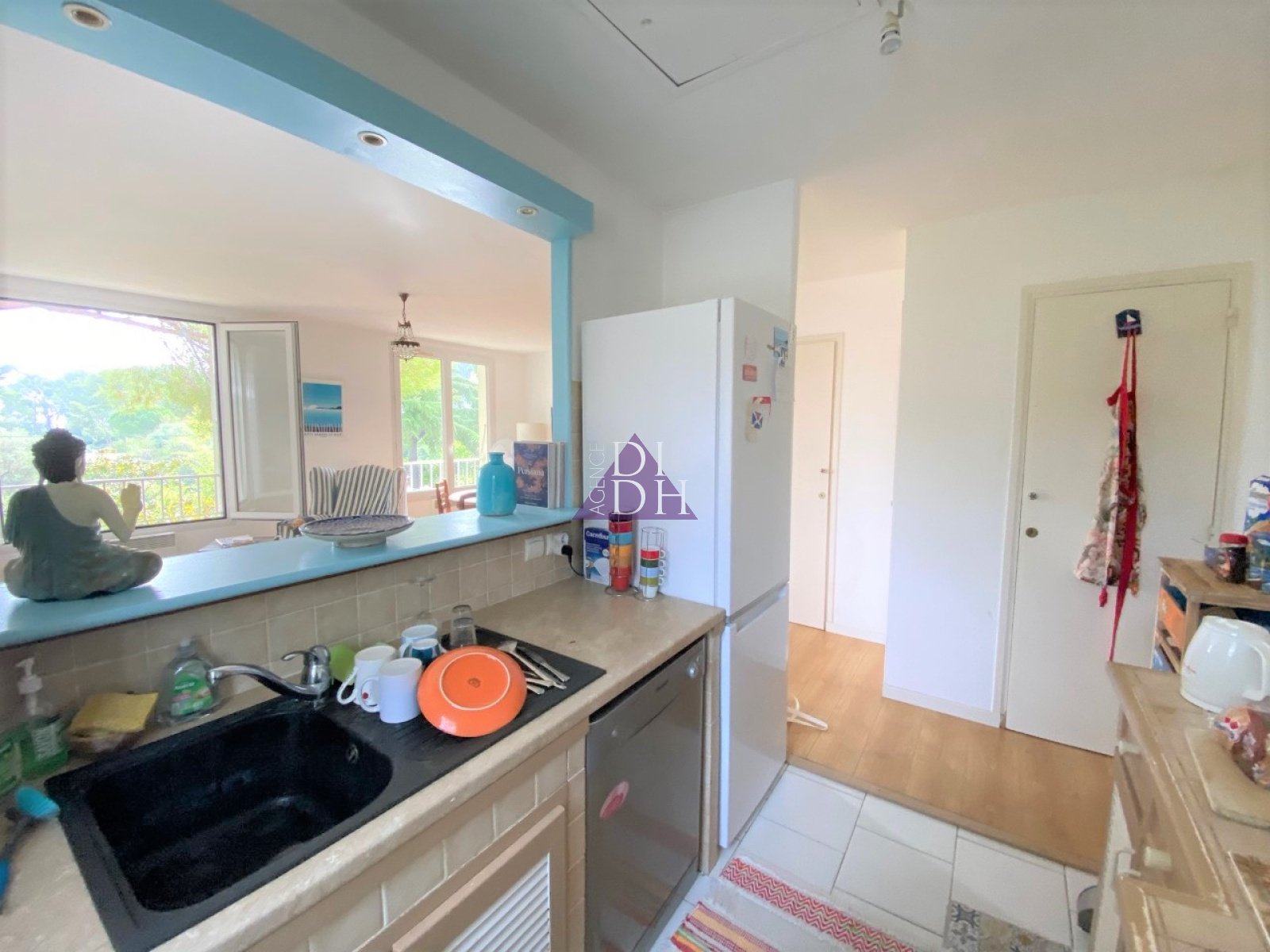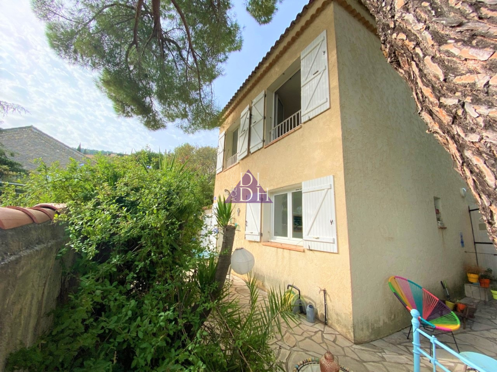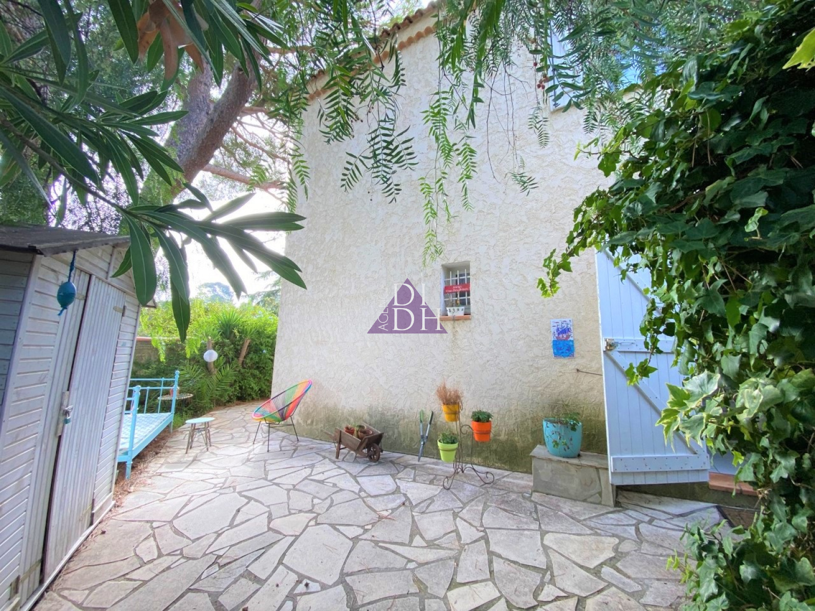 Secteur Costebelle entre ville et mer, maison 3 pièces composée d'une entrée avec placard, de deux chambres dont une donnant accès au jardin, d'un WC, d'une buanderie et à l'étage vaste séjour avec cuisine semi ouverte et placards offrant une surface totale de plus de 31m².