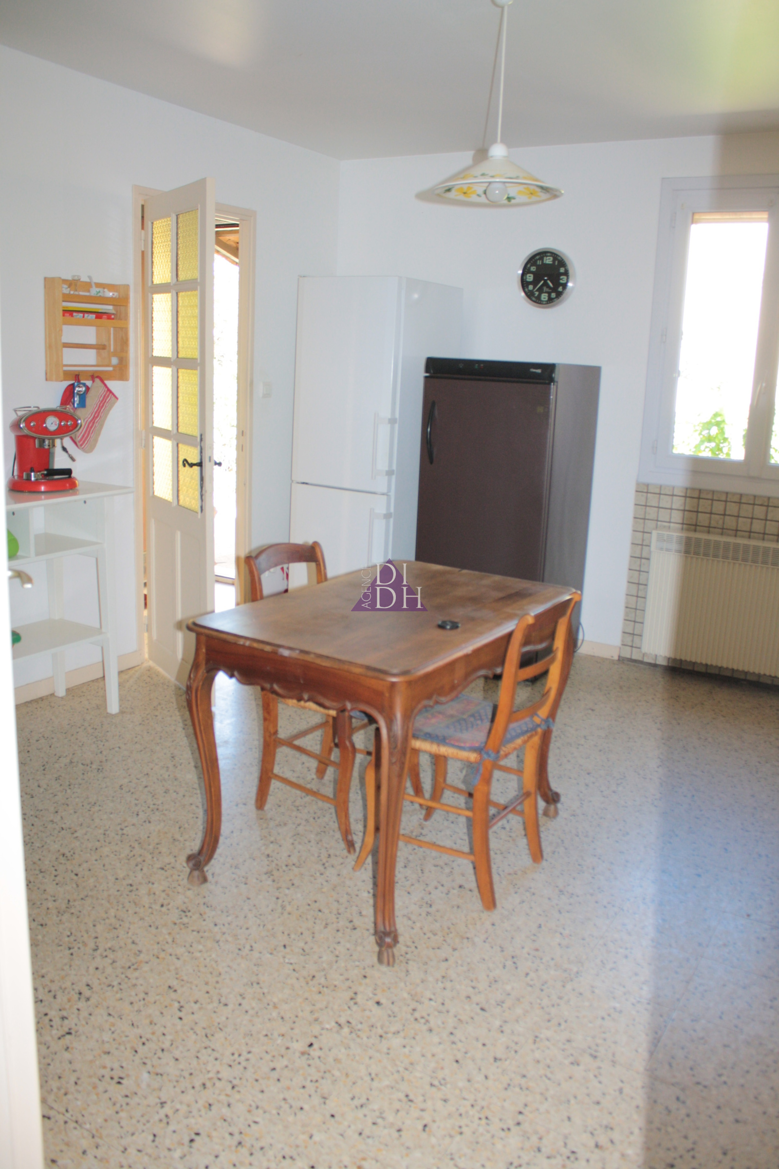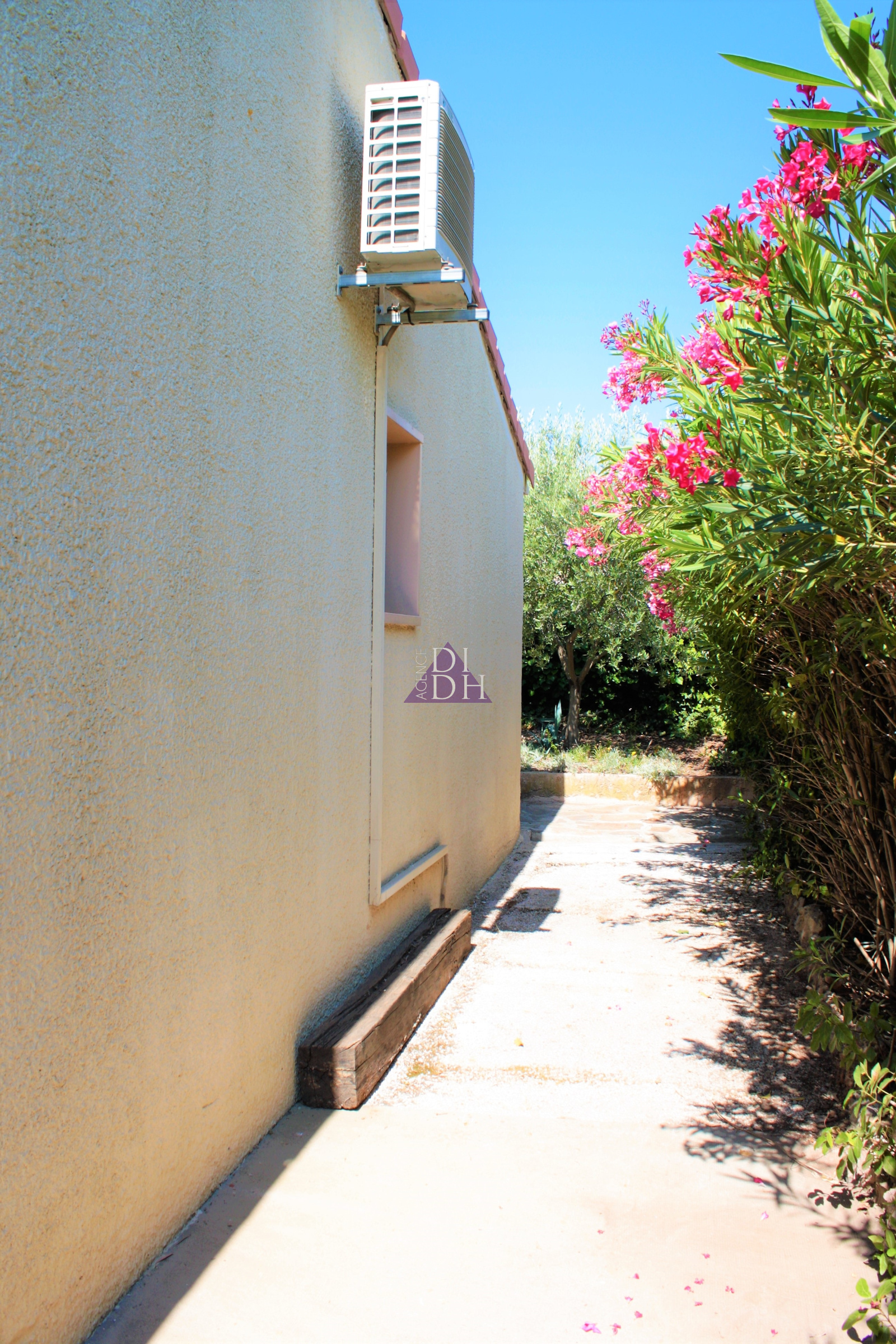 Proche de toutes les commodités maison de plain pied fonctionnelle et climatisée comprenant séjour ouvrant sur terrasse, cuisine équipée, trois chambres dont une avec placard, salle d'eau, WC indépendant.