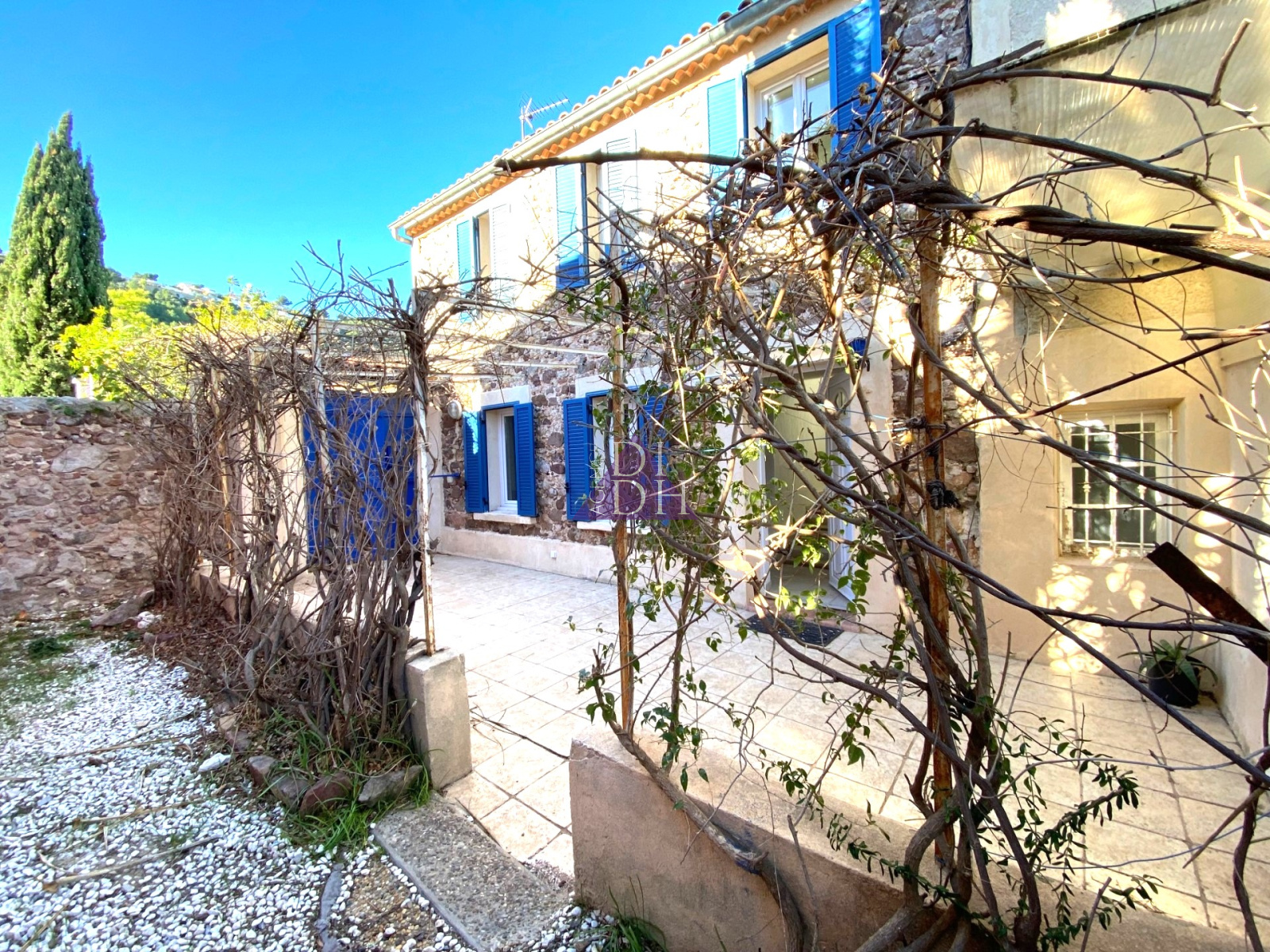 Rare proche plage de l'Almanarre, maison en pierres sur 2 niveaux comprenant salon, séjour, cuisine aménagée, buanderie, WC, cellier et à l'étage 2 chambres, salle d'eau avec WC, sur parcelle de 160m²..