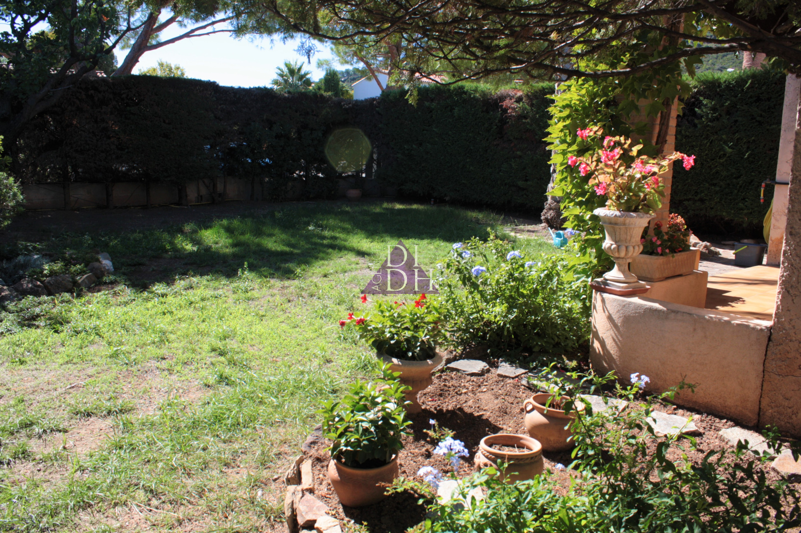 Située au sein d'un petit lotissement dans un environnement privilégier, elle est idéalement située à 3 minutes de la plage de l'Almanarre et tout autant de tous les commerces, et à 10 minutes de l''aéroport. Arrêt de bus à proximité immédiate.