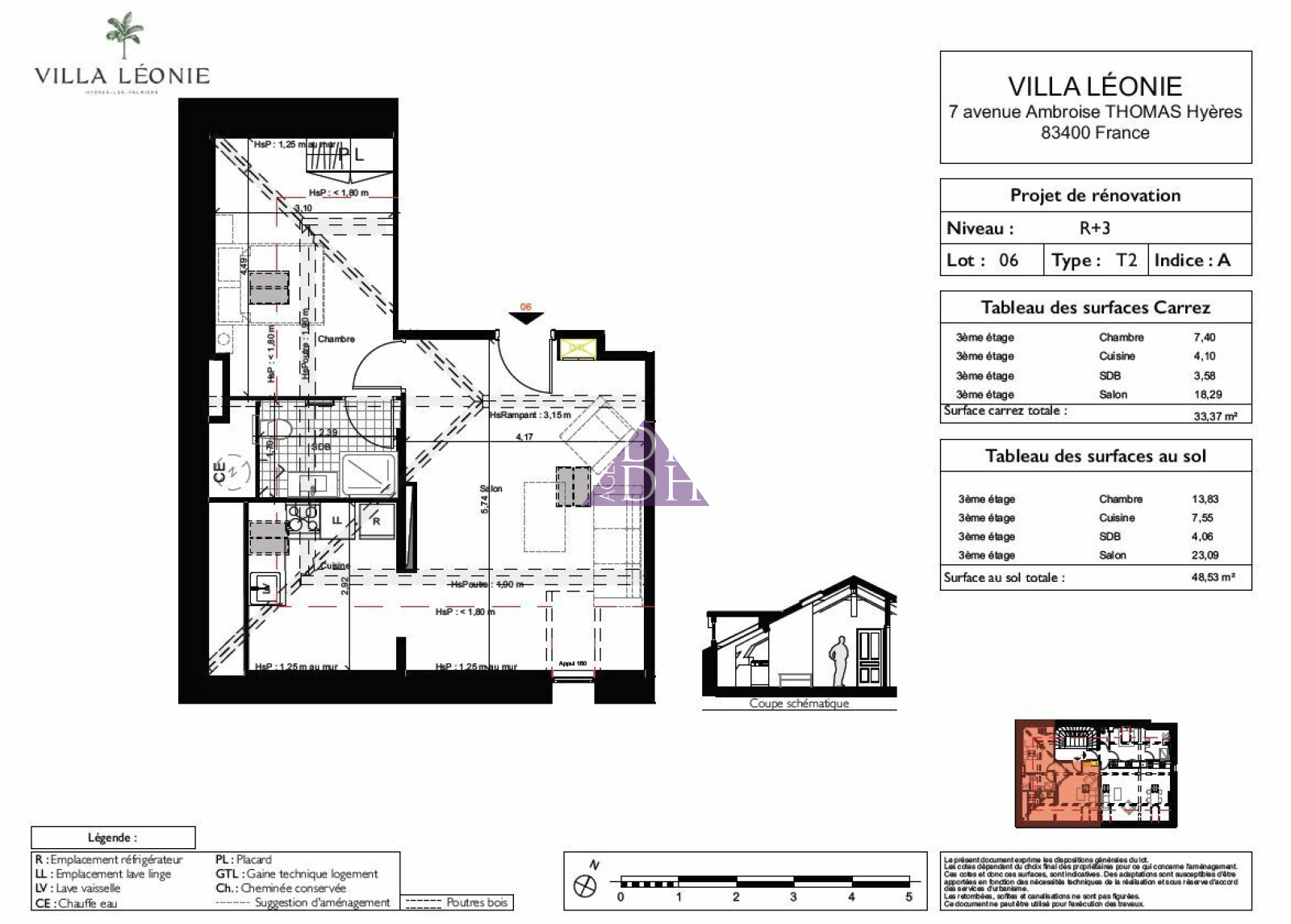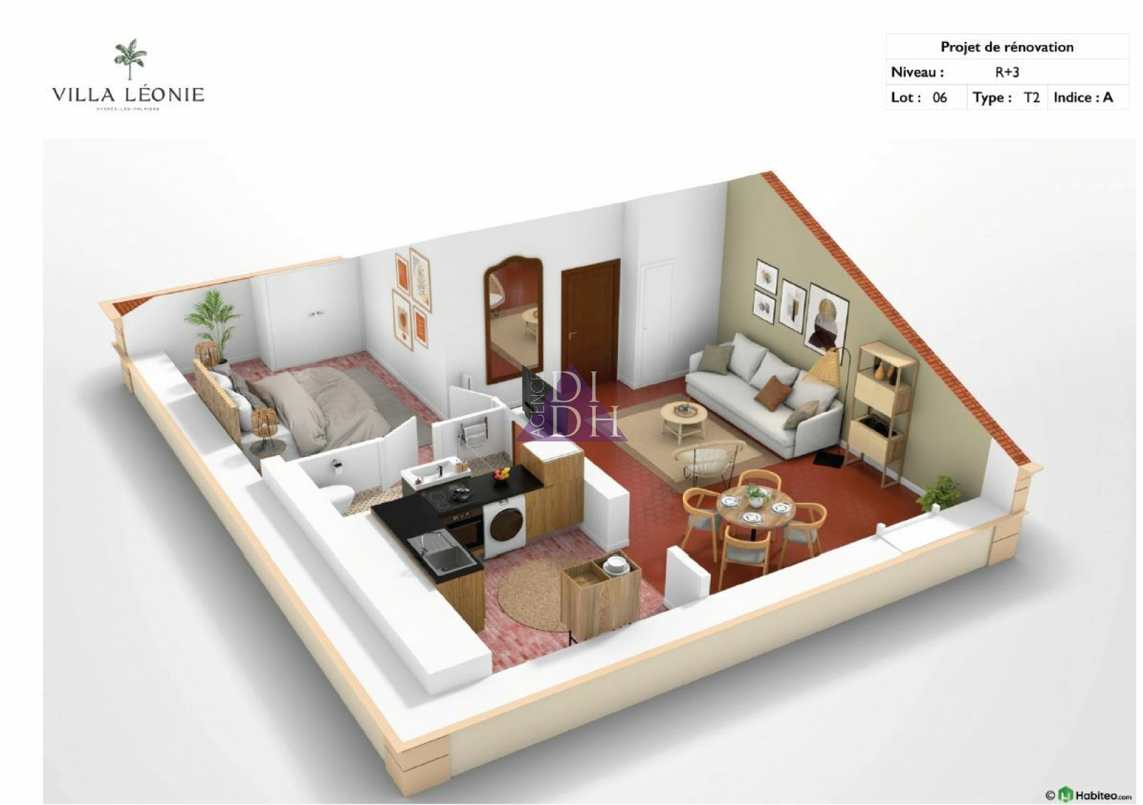 HYERES, au sein d'une bâtisse du début du XXème siècle en cours de réhabilitation , divisée en 7 appartements, nous vous proposons ce 2 pièces de près de 50m² en surface habitable en dernier étage entièrement climatisé. Il se compose d'un séjour, d'une cuisine équipée, d'une chambre avec placard et d'une salle d'eau avec WC.