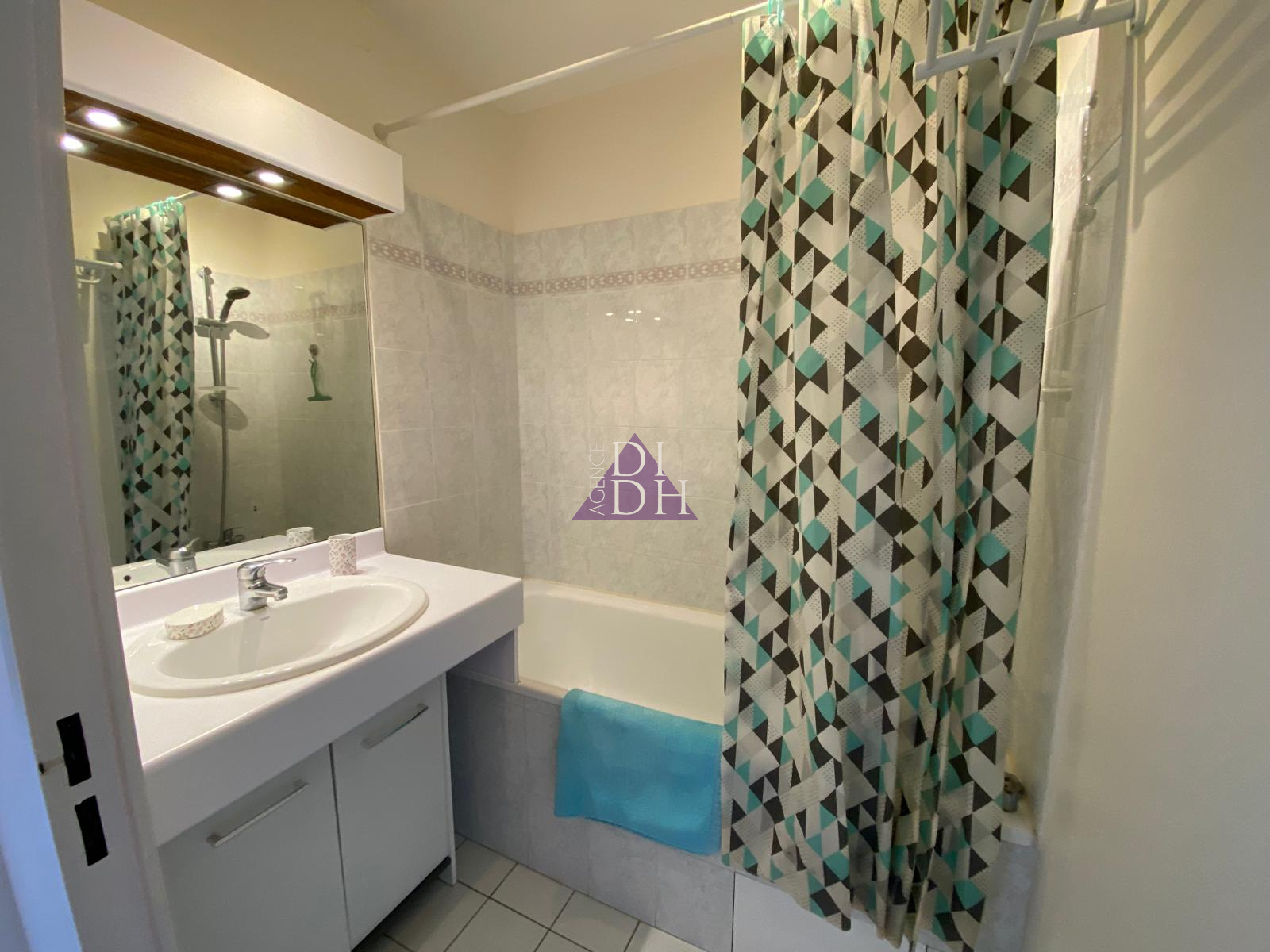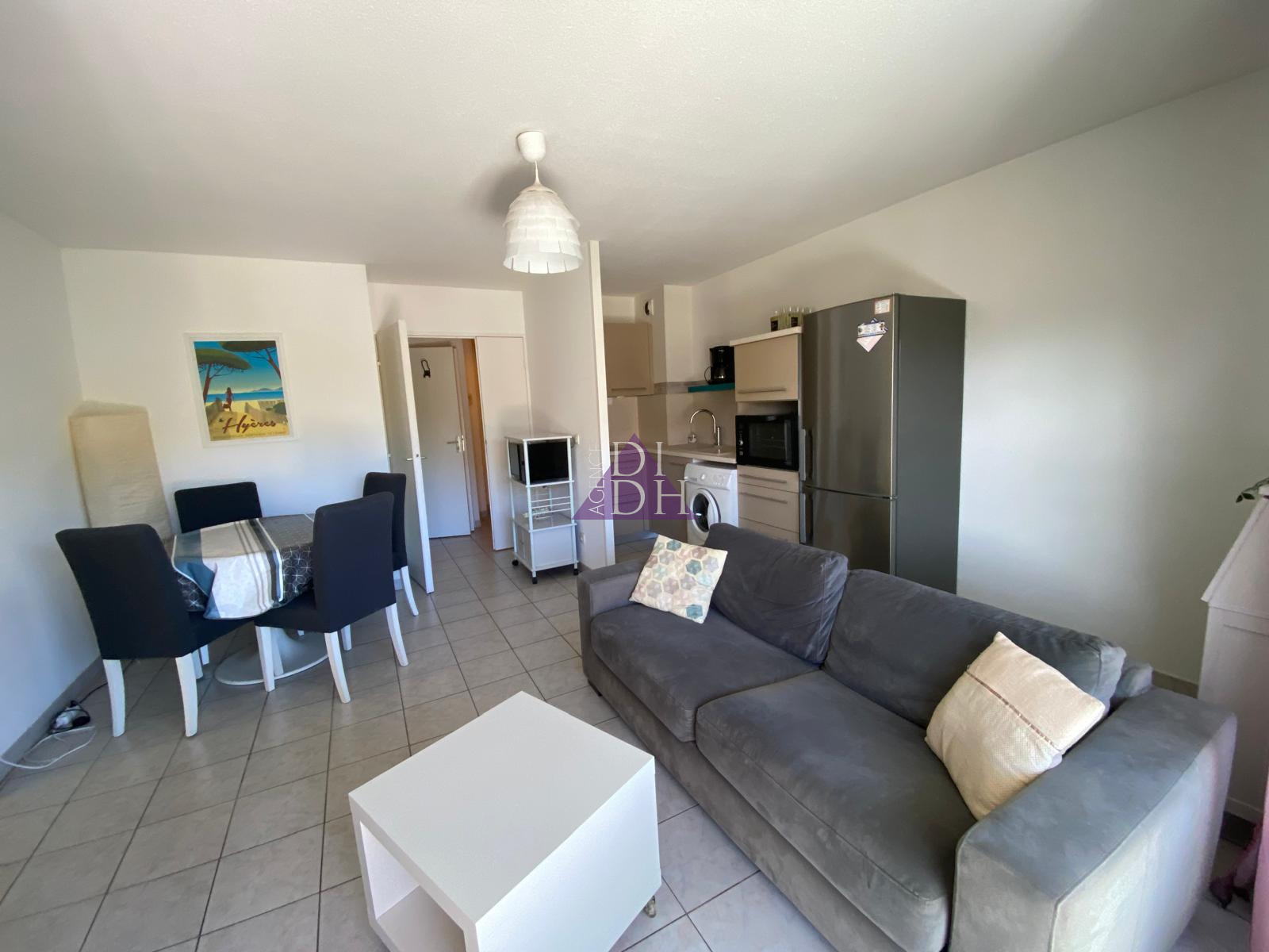 HYERES centre dans une résidence de bon standing : LE VICTORIA PARK, avec piscine, appartement 2 pièces climatisé de plus de 41m² . Situé au 2ème étage avec ascenseur, il se compose d'une vaste entrée, d'une pièce de vie de 21m² avec cuisine semi-ouverte et donnant accès à une terrasse de 7,50m², d' une chambre avec placard, d' une salle de bains et d un WC indépendant. Une place de stationnement en sous-sol complète l'ensemble.