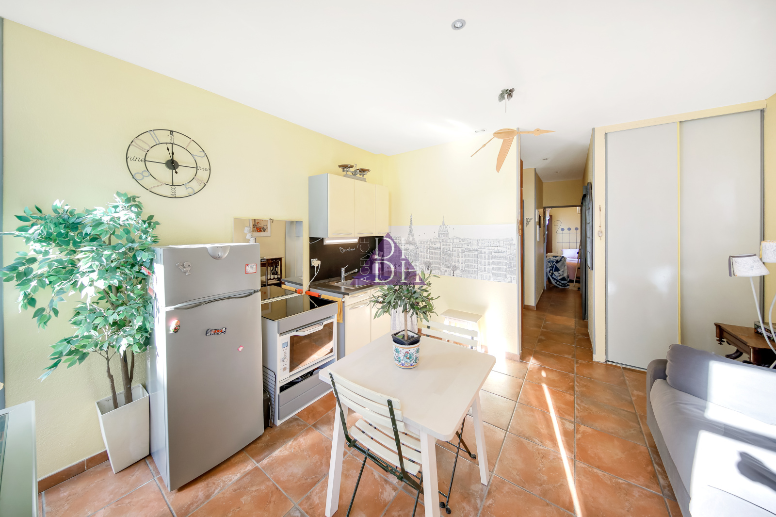 HYERES centre ville à proximité de toutes les commodités à pied , au sein d'une jolie bâtisse appartement 2 pièces traversant au 1er étage sans ascenseur. Il se compose d'une entrée, d'un séjour climatisé avec cuisine ouverte et placard et donnant accès à un petit balconnet, d'une salle d'eau, d'un WC indépendant et d'une chambre au calme.