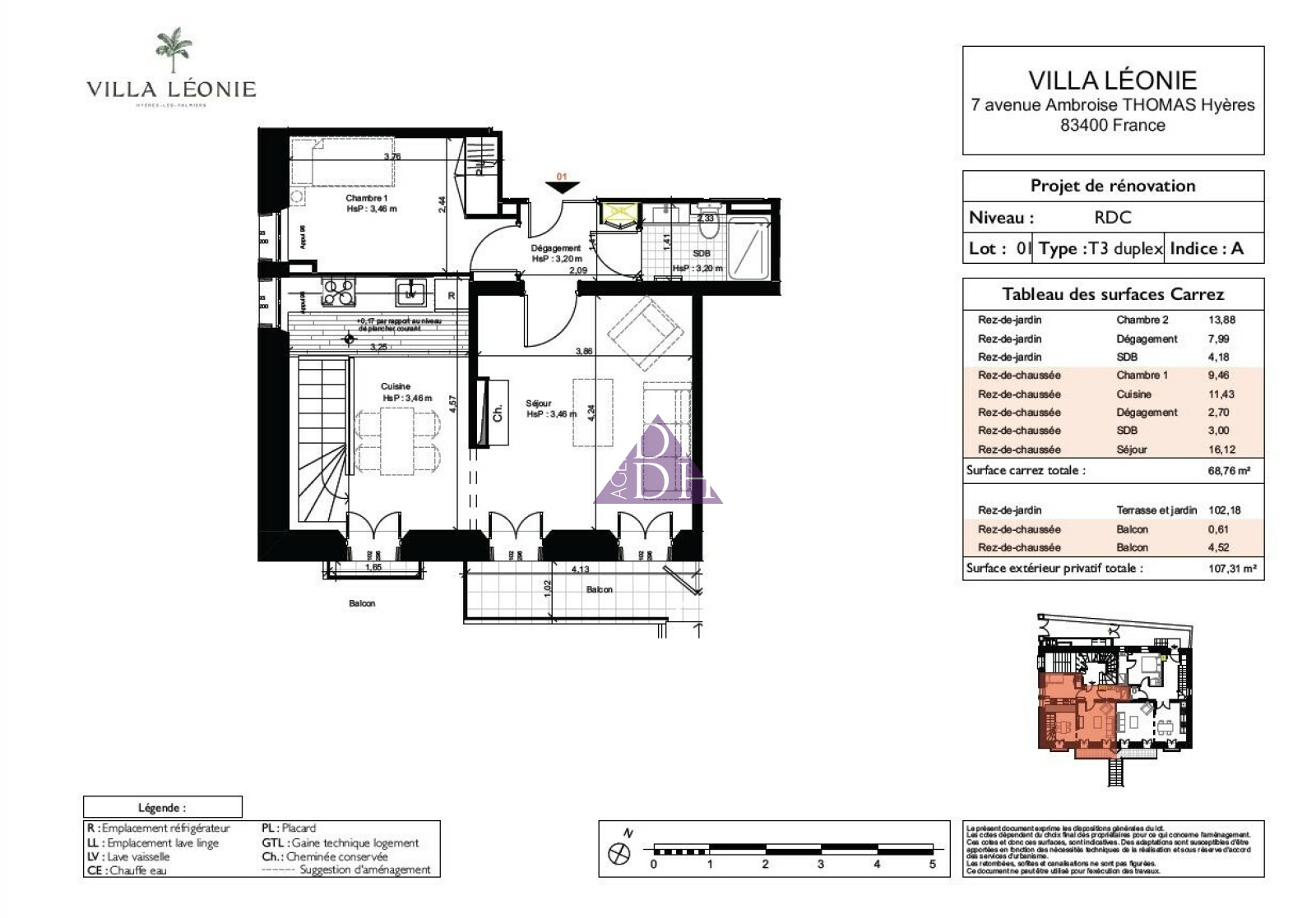 HYERES, au sein d'une bâtisse bourgeoise composée de 7 appartements, nous vous proposons ce rez de jardin 3 pièces en duplex . Il se compose en rez de chaussée d'une entrée, d'un séjour avec cheminée ouvrant sur balcon, d'une cuisine, d'une chambre avec placard, d'une salle d'eau avec WC et en rez-de-jardin : d'un dégagement avec placard ( pouvant faire office de bureau) , d'une chambre avec placard, d'une salle d'eau avec wc le tout ouvrant sur terrasse et jardin plein sud de plus de 102m².