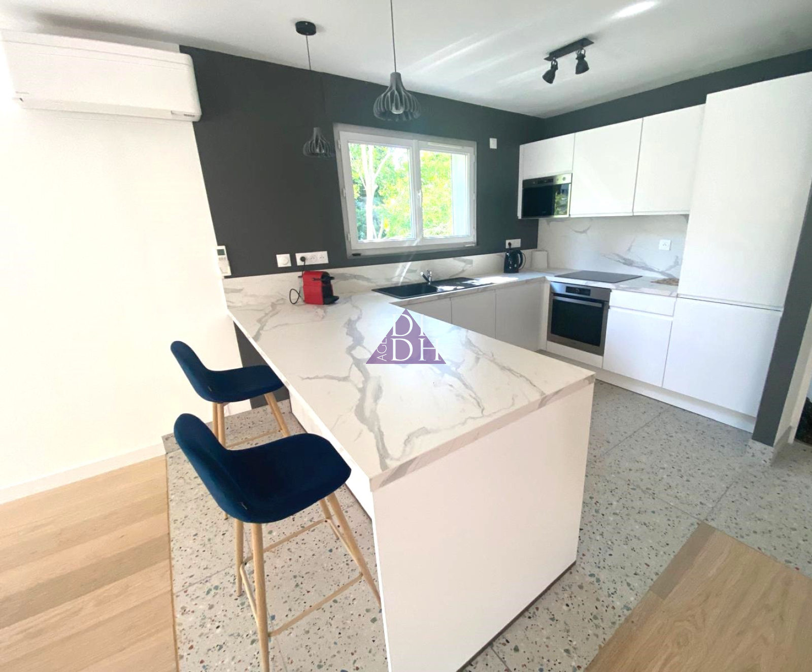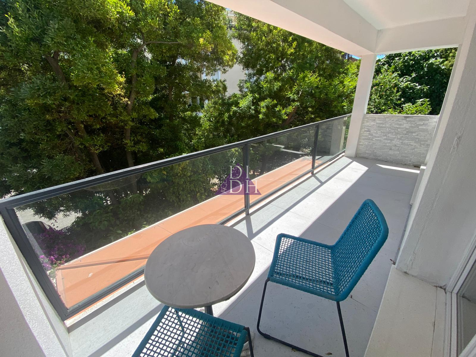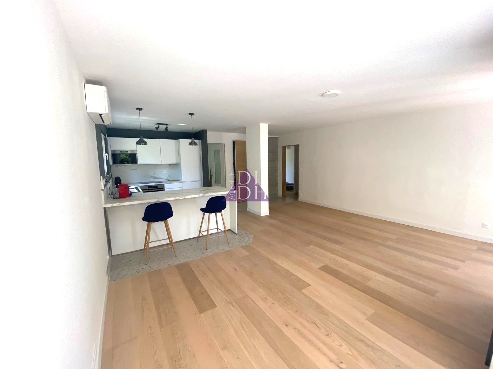 L'appartement est en parfait état : climatisation, volets roulants electriques et les matériaux choisis comtemporains et chaleureux!