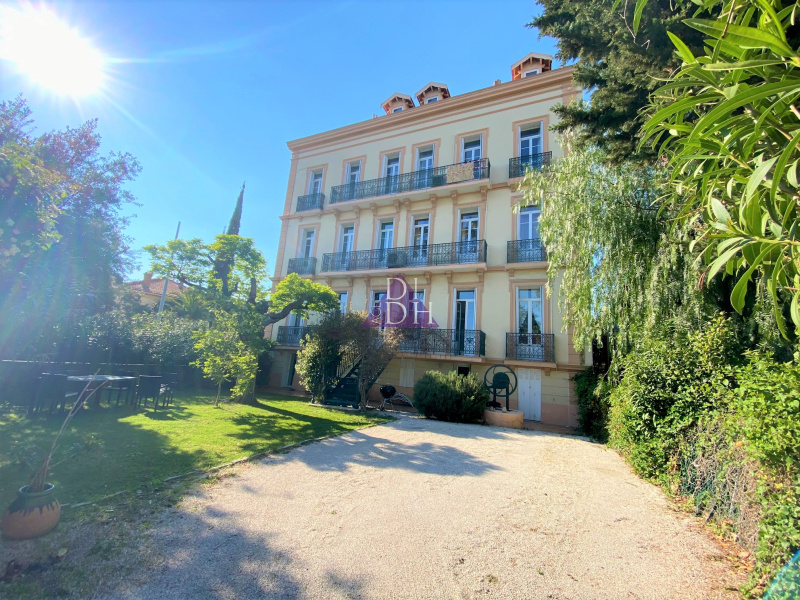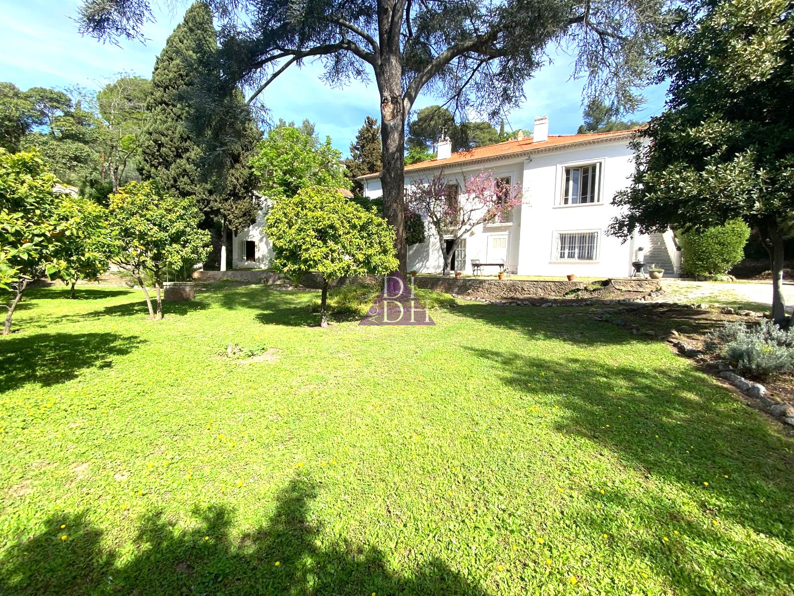 HYERES dans quartier résidentiel et très prisé, proche à pied du centre ville (commerces, écoles...) propriété sur 2700m² de terrain composée de 2 maisons : la première bâtisse est une véritable maison de maître d'une surface de plus de 260m², édifiée en 1911, elle se compose sur le rez-de-chaussée : d'un vaste hall d'entrée, d'un salon avec cheminée, de trois chambres d'une une avec salle de bains attenante, WC indépendant et dégagement avec placard, une salle de bains avec WC et à l’étage dont l’accès se fait par un majestueux escalier de bois, hall, deux chambres dont une avec cabinet de toilettes, salle de bains avec WC, un séjour avec accès à un balcon au sud offrant une vue jusqu'à la mer, un salon, une salle à manger, une cuisine ouvrant sur un balcon et permettant de redescendre au jardin. Des combles en partie exploitables, un garage, une chaufferie et une cave à vin aménagée sous l’escalier complètent l’ensemble. Belles hauteurs sous plafond jusqu'à 3,30m sur certaines pièces, sol en parquet massif, nombreuses cheminées en marbre pour ce bien d'exception à rafraichir mais dont la toiture a été refaite .