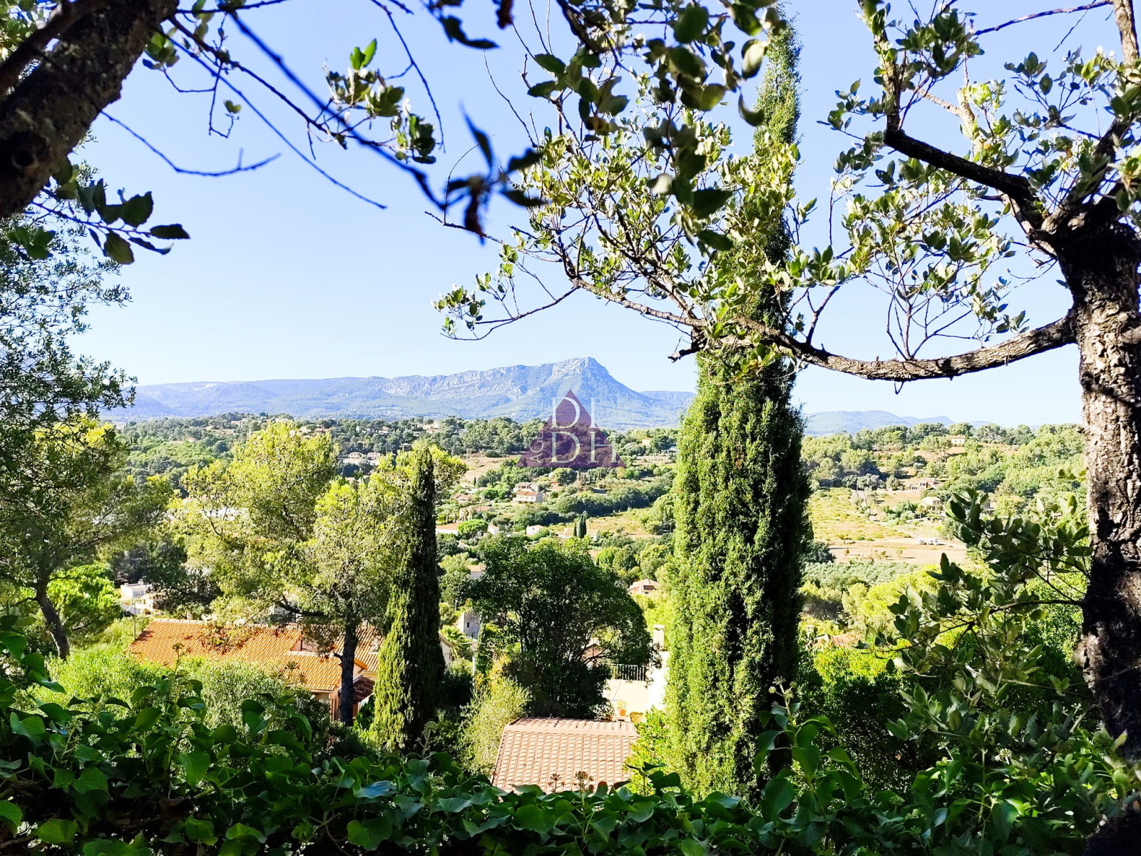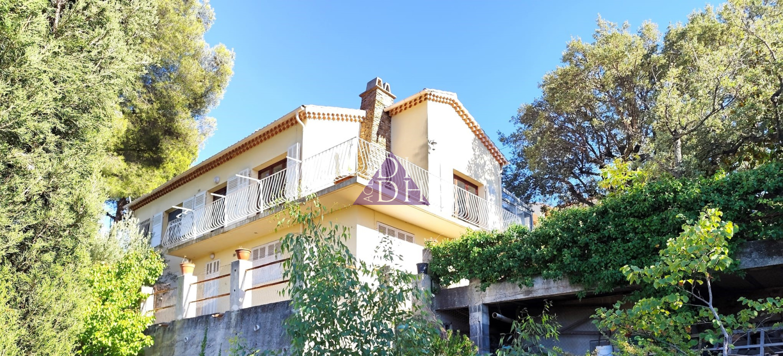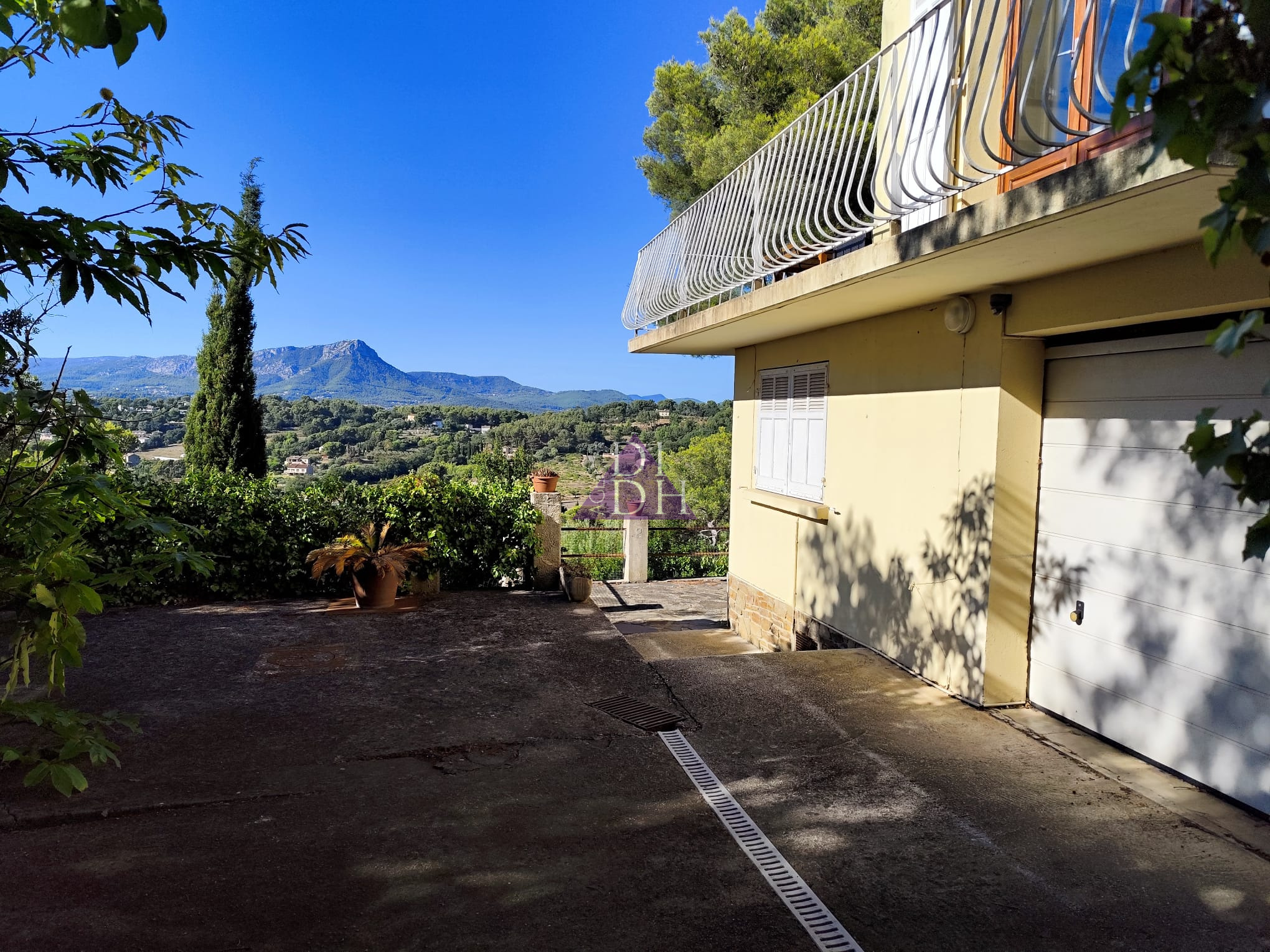 Profitez de plusieurs terrasses exposées Sud, Nord et Ouest et d'un jardin arboré d'essences méditerranéennes au calme, sans vis-à-vis, avec de superbes vue sur les collines et la Méditerranée.