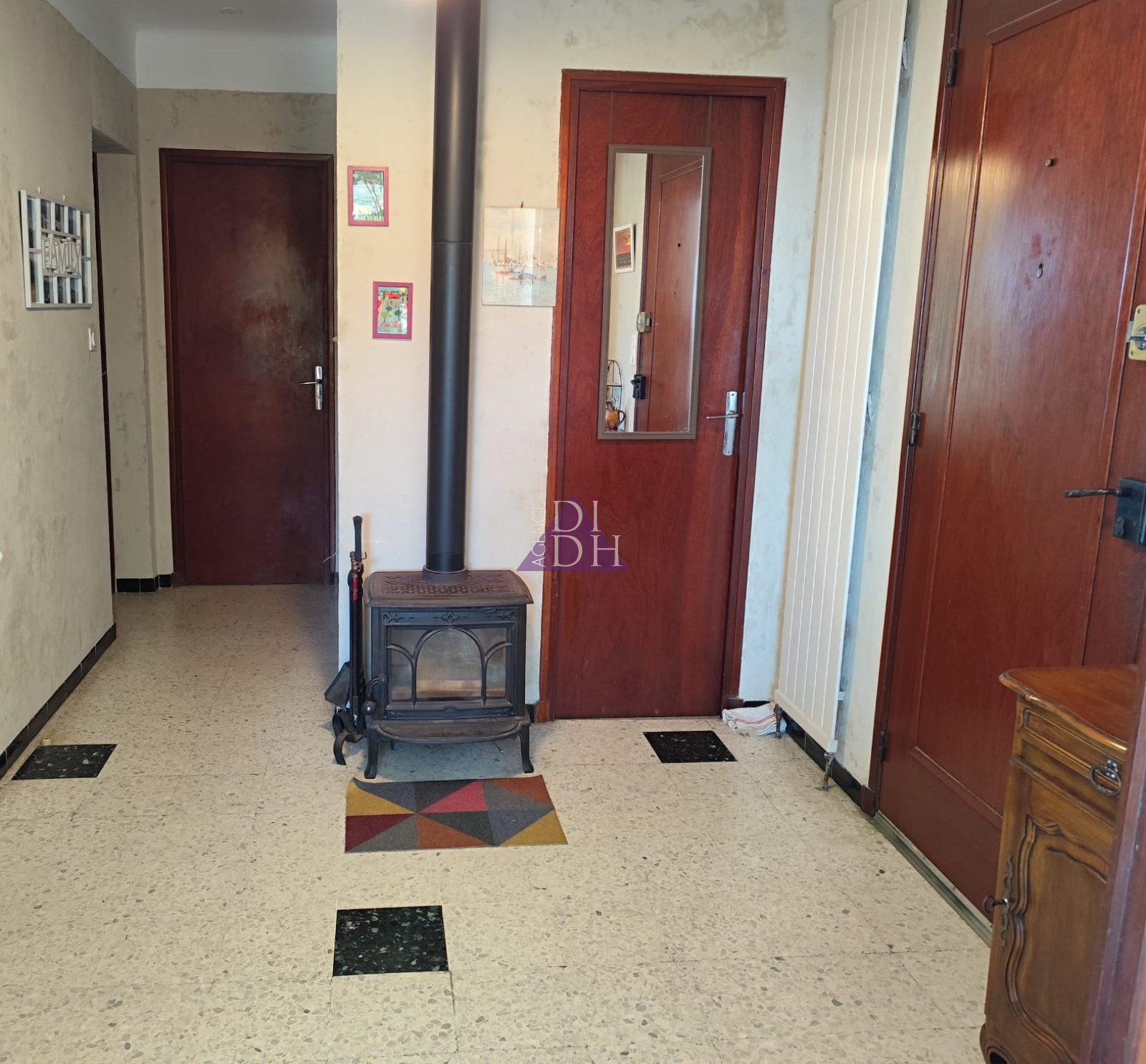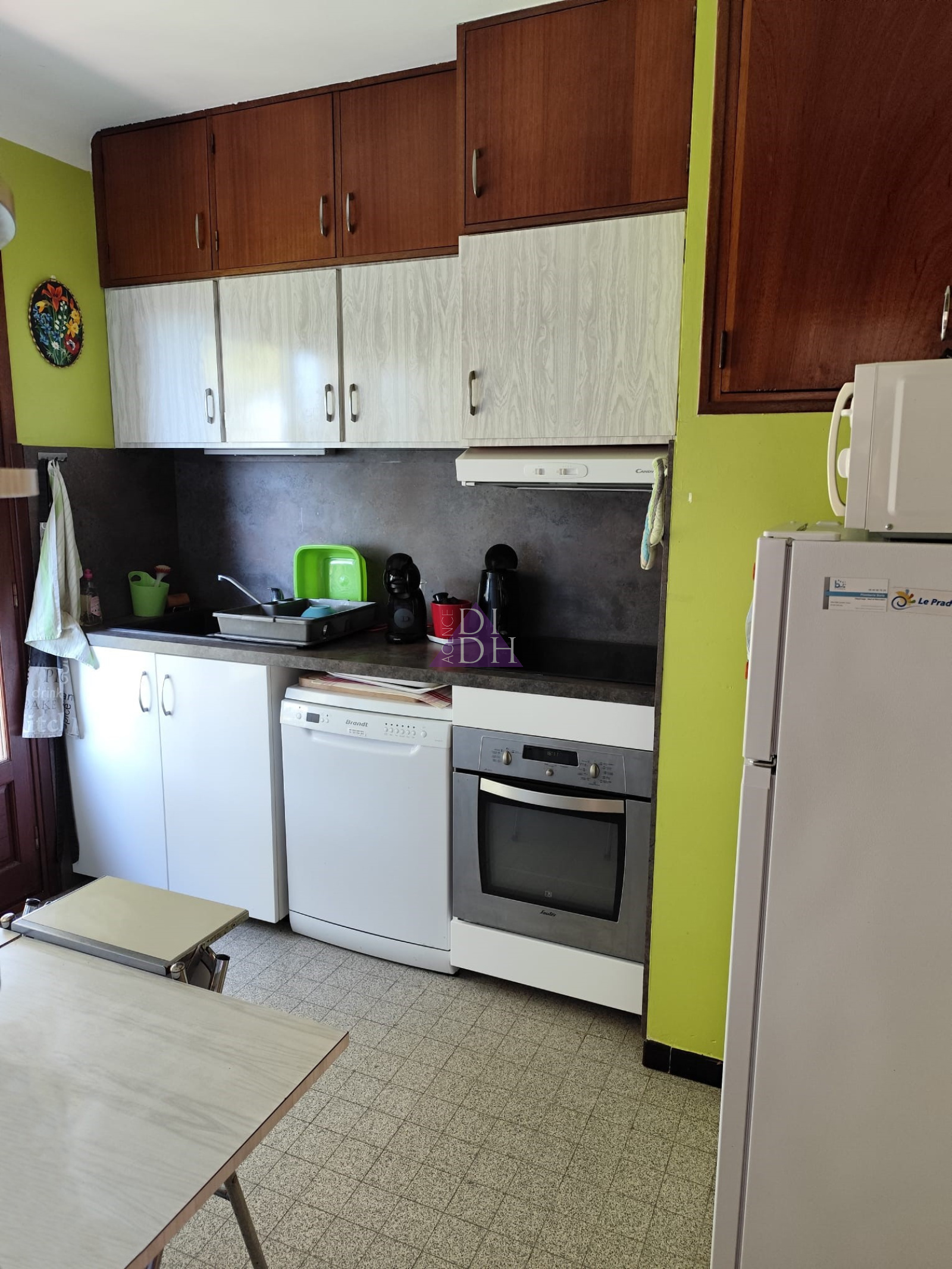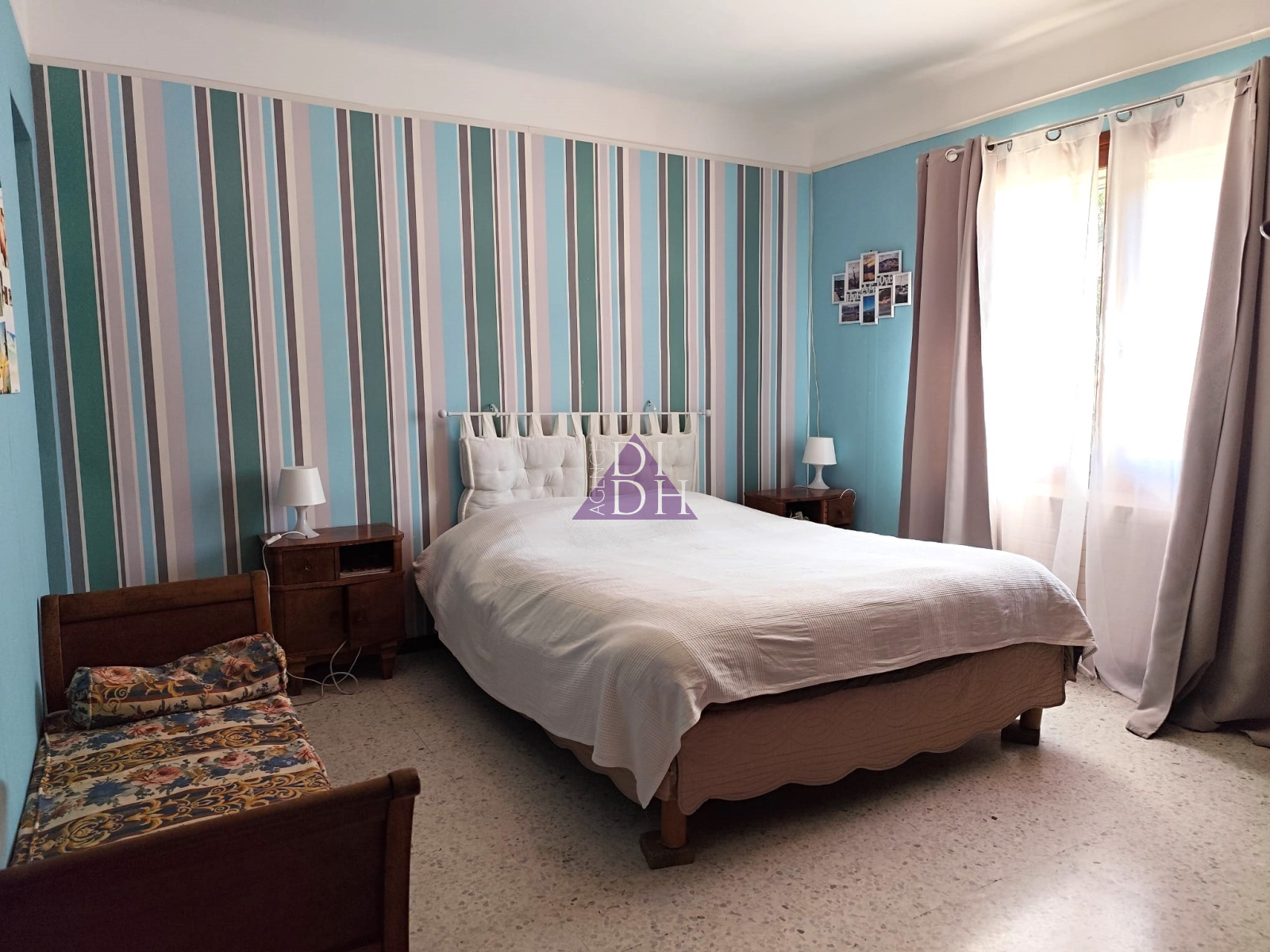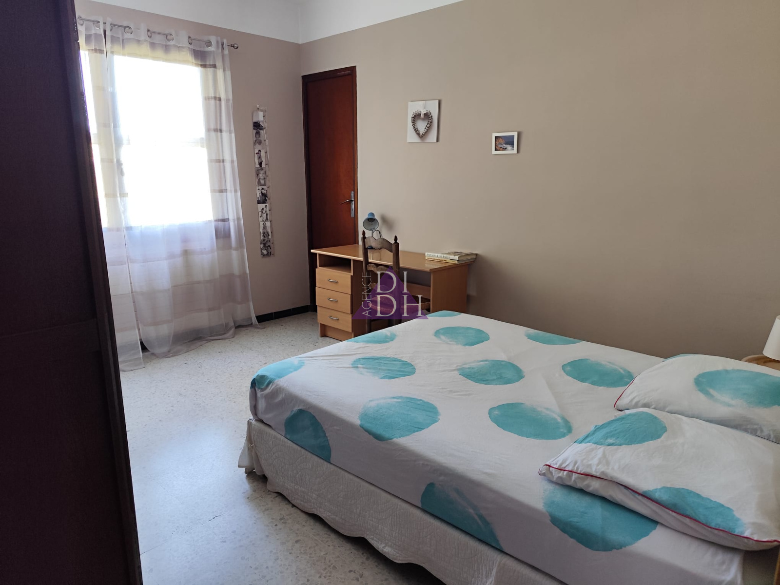Sur deux niveaux, elle se compose au rez-de chaussée d' une entrée accueillante avec poêle à bois, d'un séjour double lumineux donnant sur un balcon avec vue mer et colline, d'une cuisine séparée, d'un dégagement avec rangements, d'une salle de bains et WC indépendant. Une véranda de 10m2 offre une surface supplémentaire non négligable ainsi qu' une grande terrasse de 33m2 exposée sud.