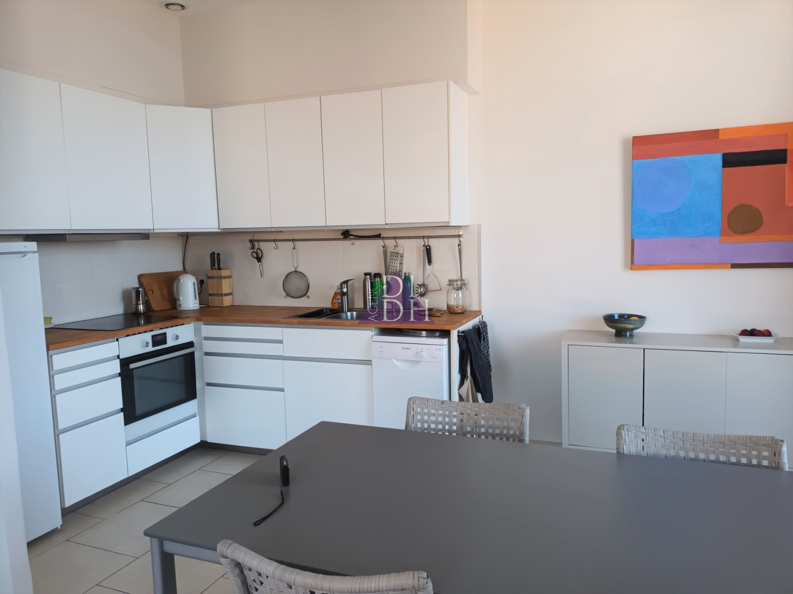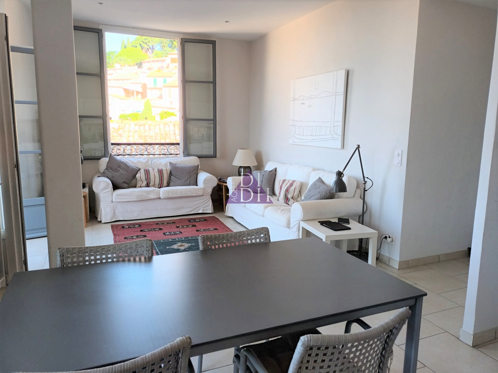 Une pièce de vie de 30m², avec cuisine équipée, prolongée par un balcon/terrasse, exposé Sud, vous offre une vue dégagée colline et village qui incite à la détente et à la rêverie.