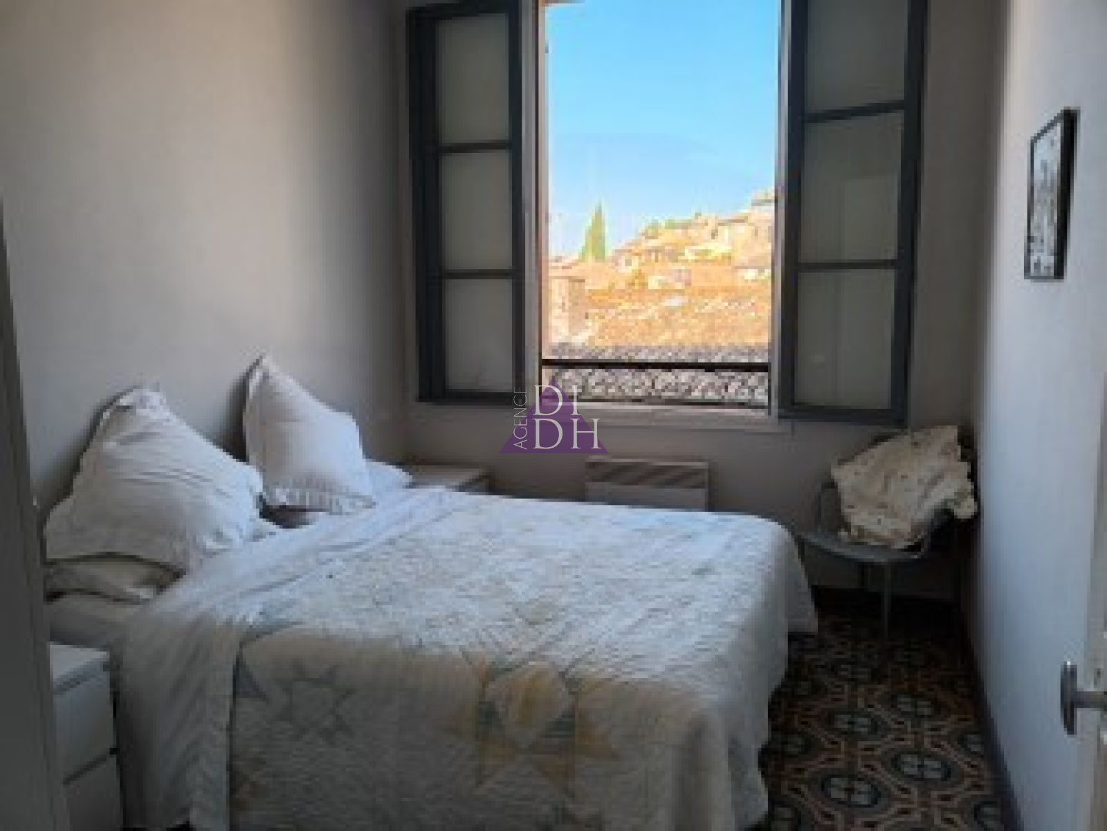 Une entrée avec placard suivi d'un couloir qui desserre l'espace nuit dans lequel vous bénéficiez de 2 chambres avec carreaux ciment au sol, sans vis à vis, exposées Ouest, avec vue sur le village et de 2 salles de bain avec WC ainsi que d'une buanderie.