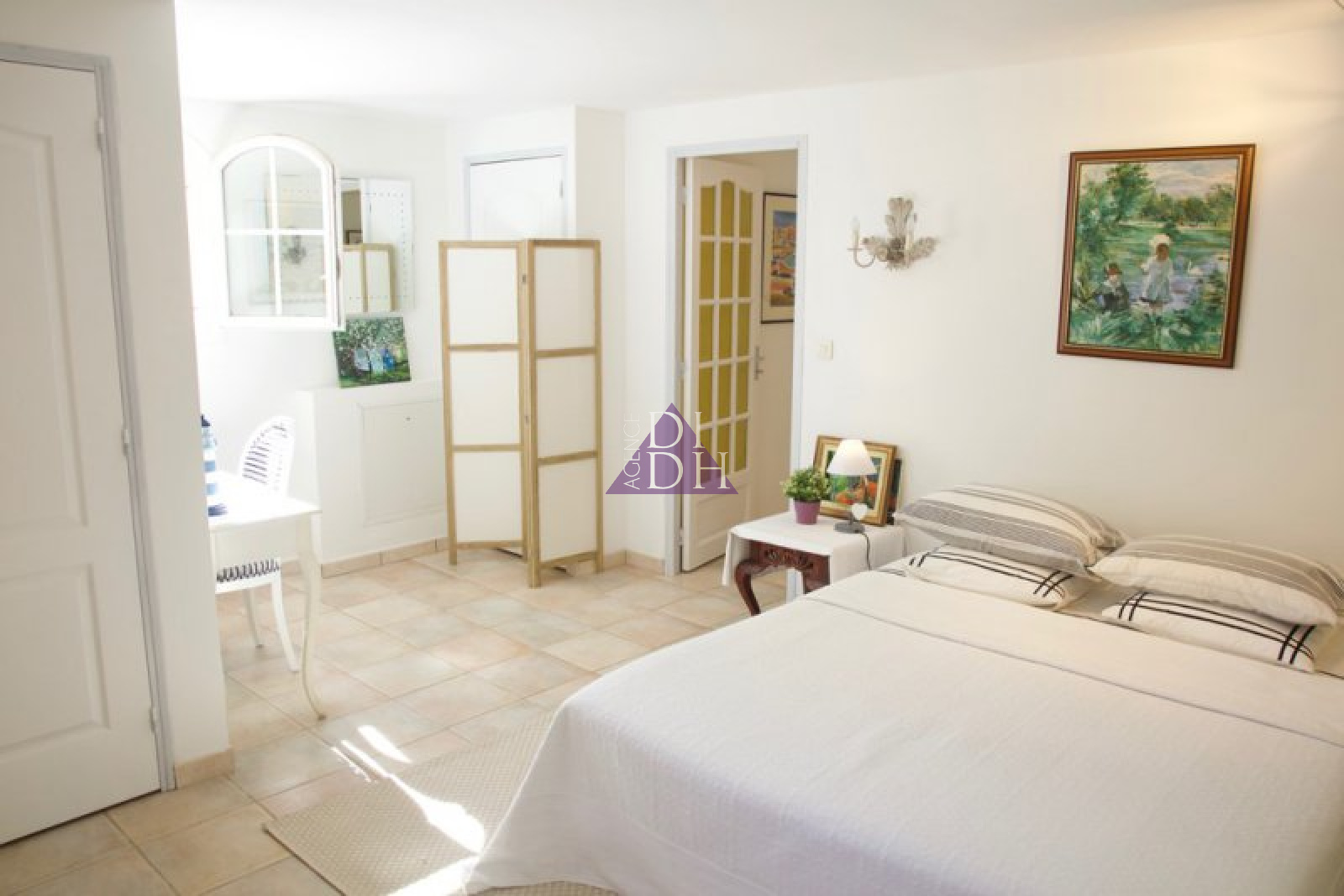 villa récente de 6 pièces en parfait état sur un terrain de 1300 m². L'espace principal de 145m² comprend de plain pied : beau séjour de 60 m² donnant sur une grande terrasse de 35 m² à l'ouest et terrasse et jardin à l'est, cuisine américaine, une suite parentale de 23m² avec salle d'eau, WC indépendant. A l'étage : 2 chambres, une salle de bains et WC. Appartement indépendant d'environ 80m² aménagé en sous-sol., situé en rez-de-jardin, il peut faire l'objet de locations saisonnières. Piscine avec grande plage et grand pool house. Un vaste abri voitures complète l'ensemble.